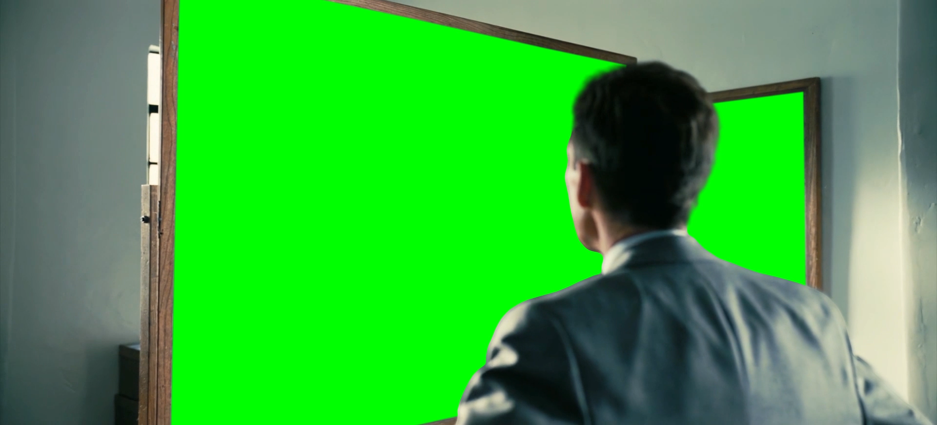 Green Screen Meme Template of Oppenheimer looking at a chalkboard in the Oppenheimer (2023) movie