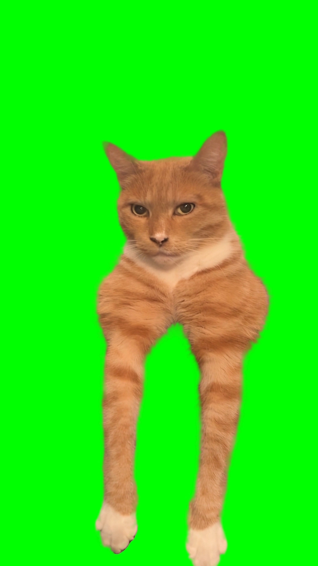 Green Screen Meme Template of an orange cat mewing/looksmaxxing while looking at the camera