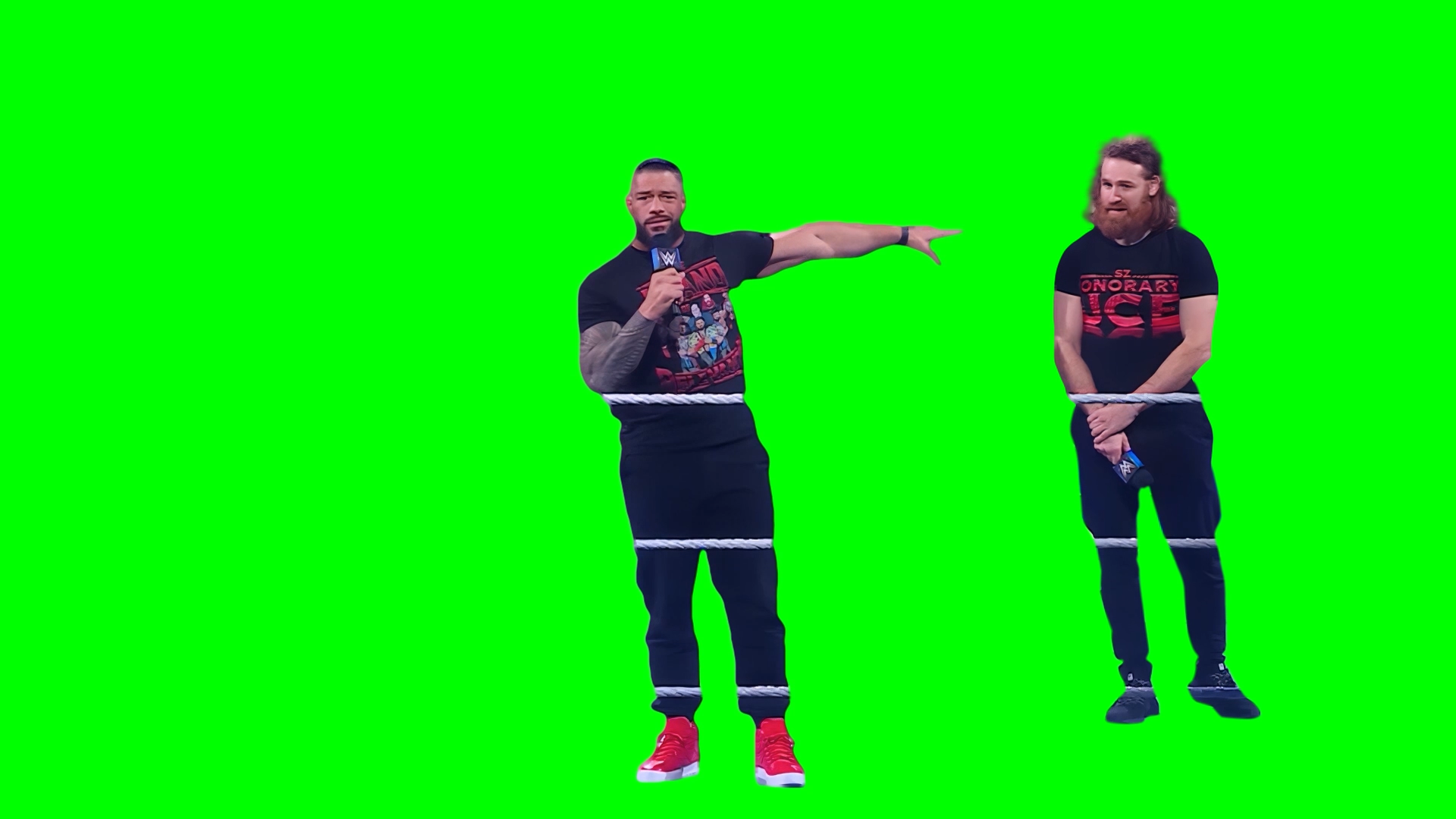 Green Screen Meme Template of Roman Reigns saying "I didn't lose, he lost!" and then points at Sami Zayn