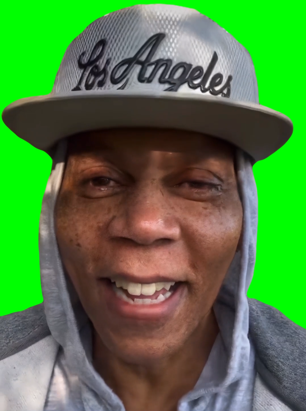 Green Screen Meme Template of Rupaul laughing then blowing air