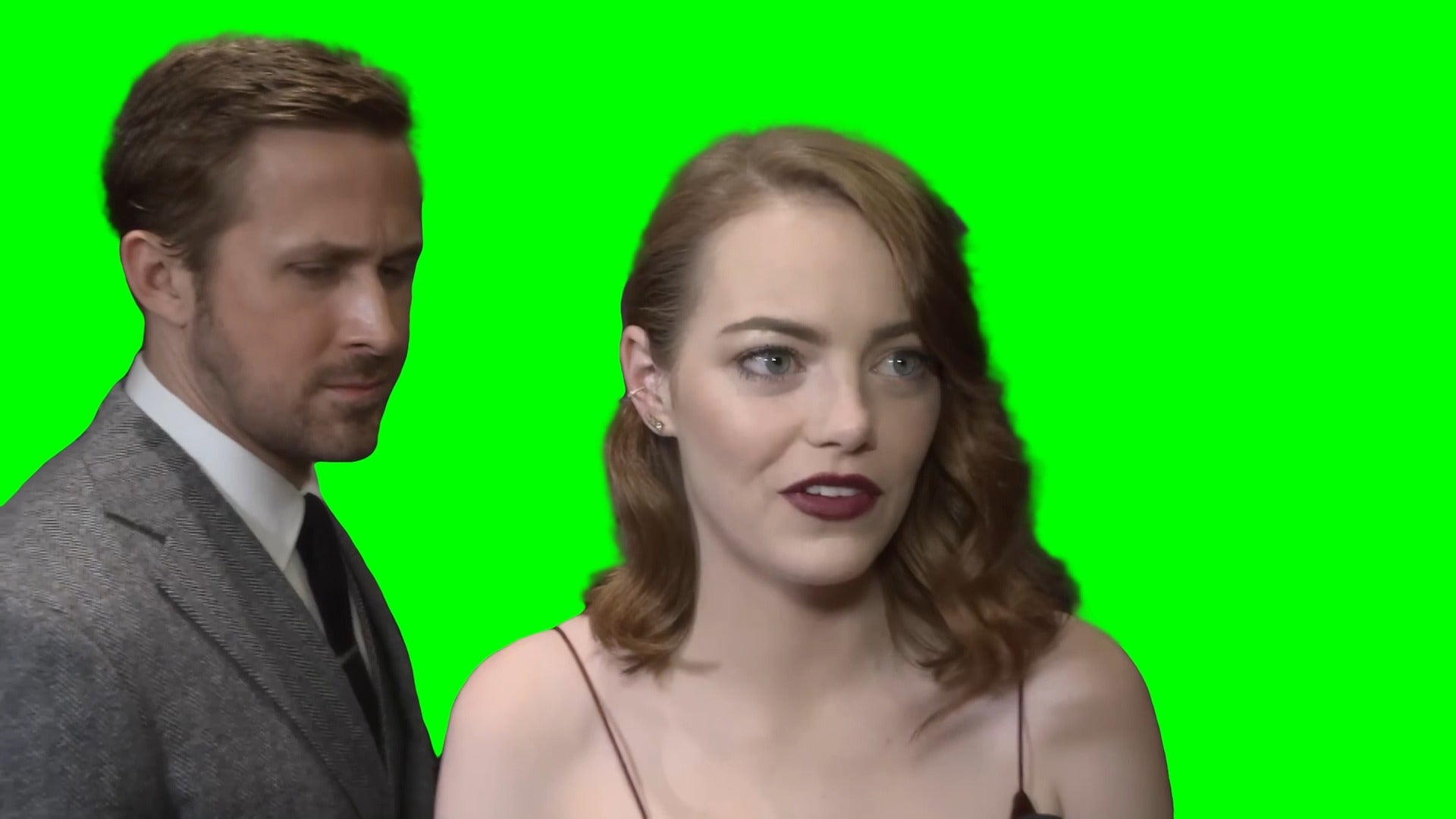 Green Screen Meme Template of Ryan Gosling walking towards Emma Stone and staring at her until she notices and then he walks away at La La Land's Gala
