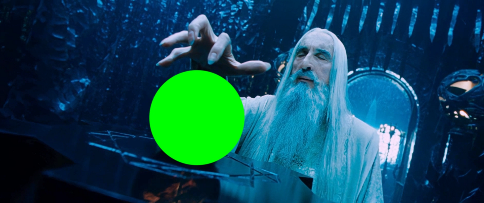 Green Screen Meme Template of Saruman playing with the Sauron's Ball Palantir