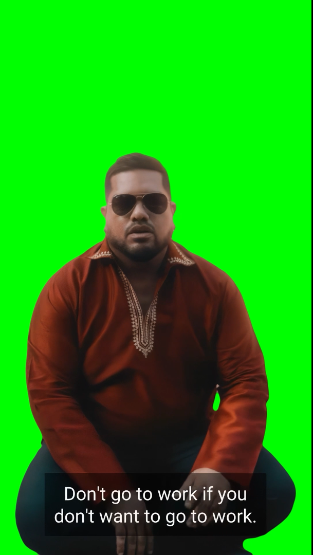 Green Screen Meme Template of the Self-Help Singh saying "Don't go to work if you don't want to go to work"Source: https://www.instagram.com/reel/C-skE1tvf8v/