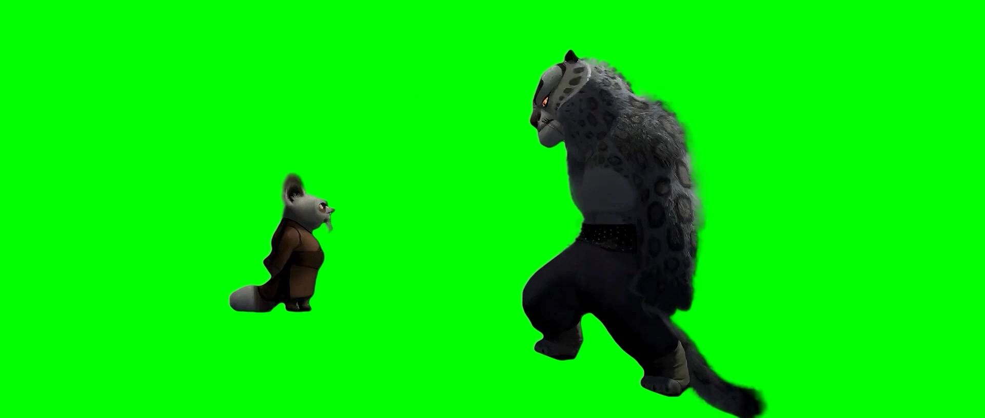 Green Screen Meme Template of Shifu and Tai Lung facing each other off during a thunderstorm in the Kung Fu Panda movie
