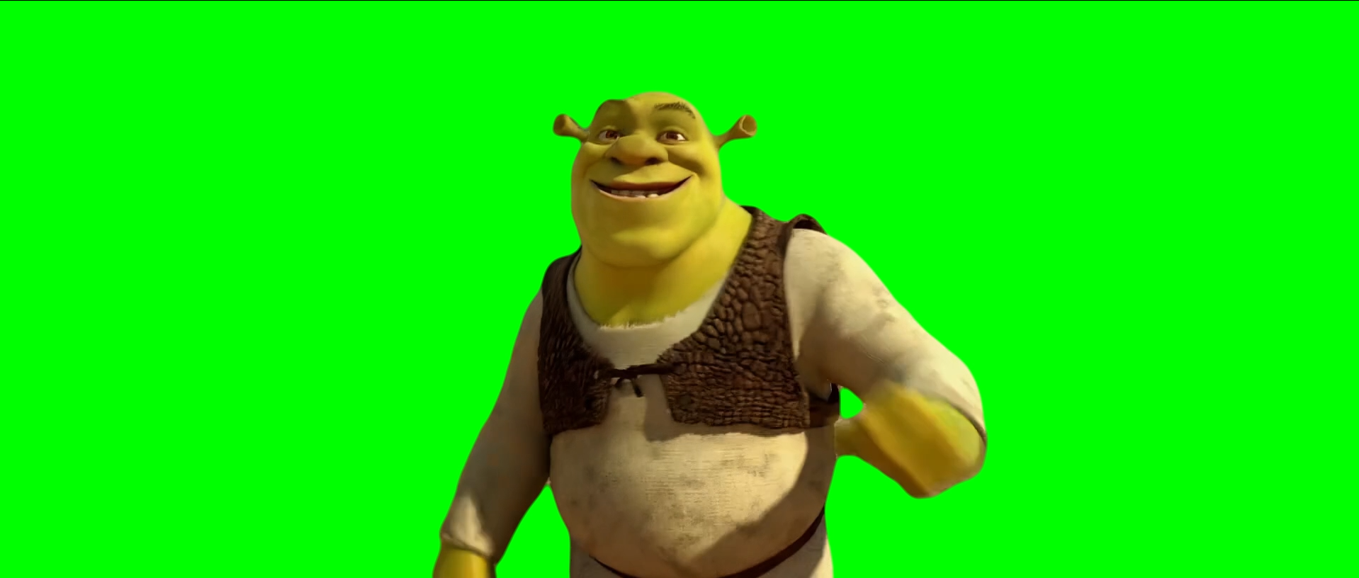 Green Screen Meme Template of Shrek walking and scaring people away in the Shrek 4 movie