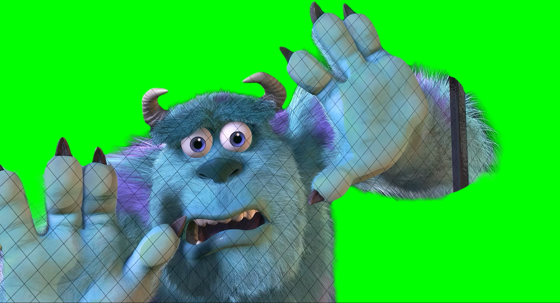 Green Screen Meme Template of Sulley thinking that Boo died in the Monsters, Inc. movie