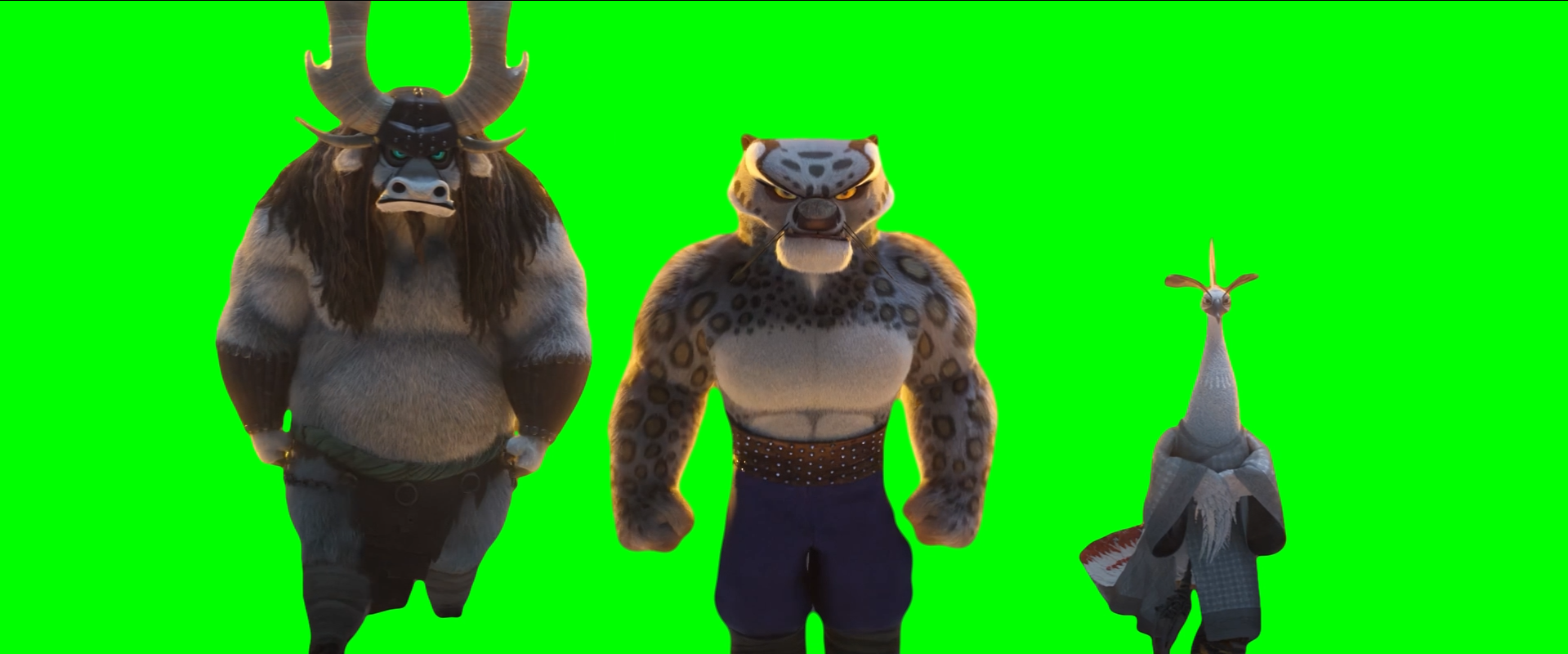 Green Screen Meme Template of Tai Lung, Shen, and Kai bowing to Po in the Kung Fu Panda 4 movie