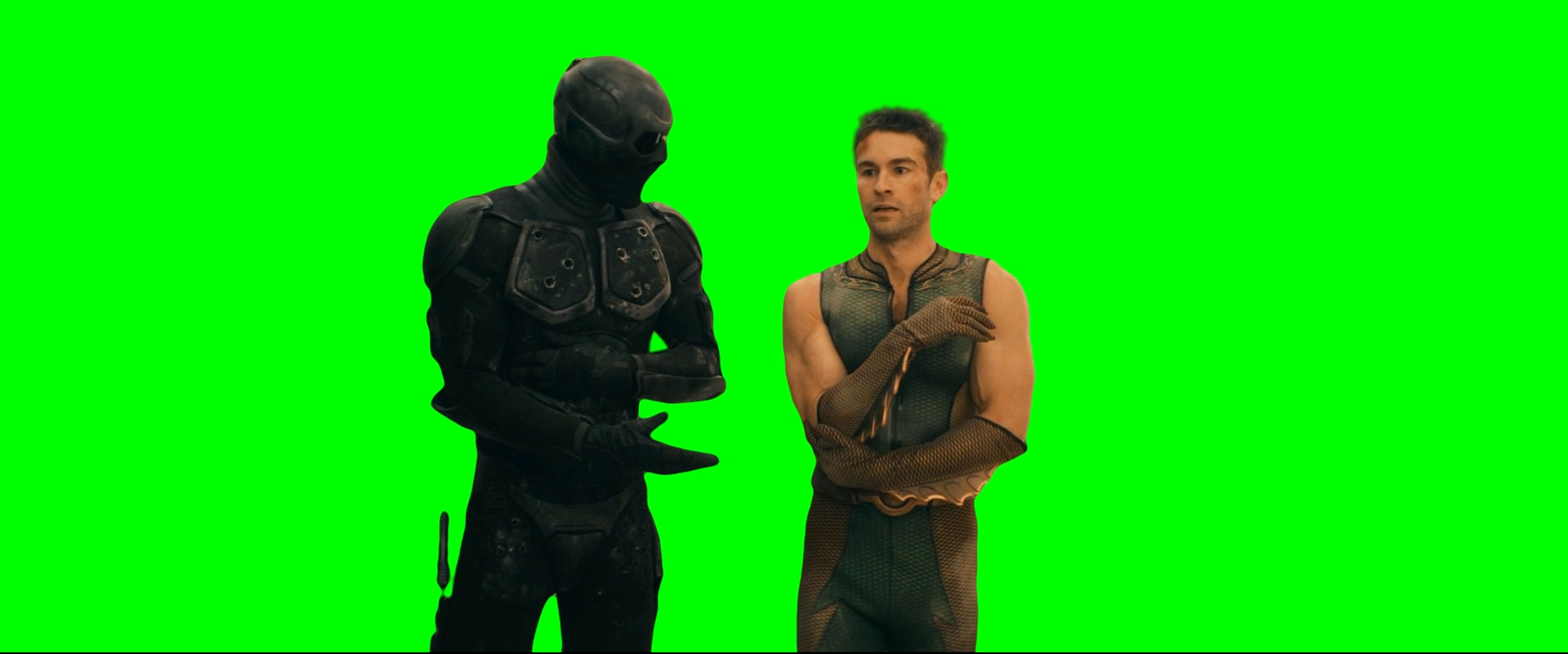 Green Screen Meme Template of The Deep and Black Noir saying "Bro" to each other in The Boys TV show