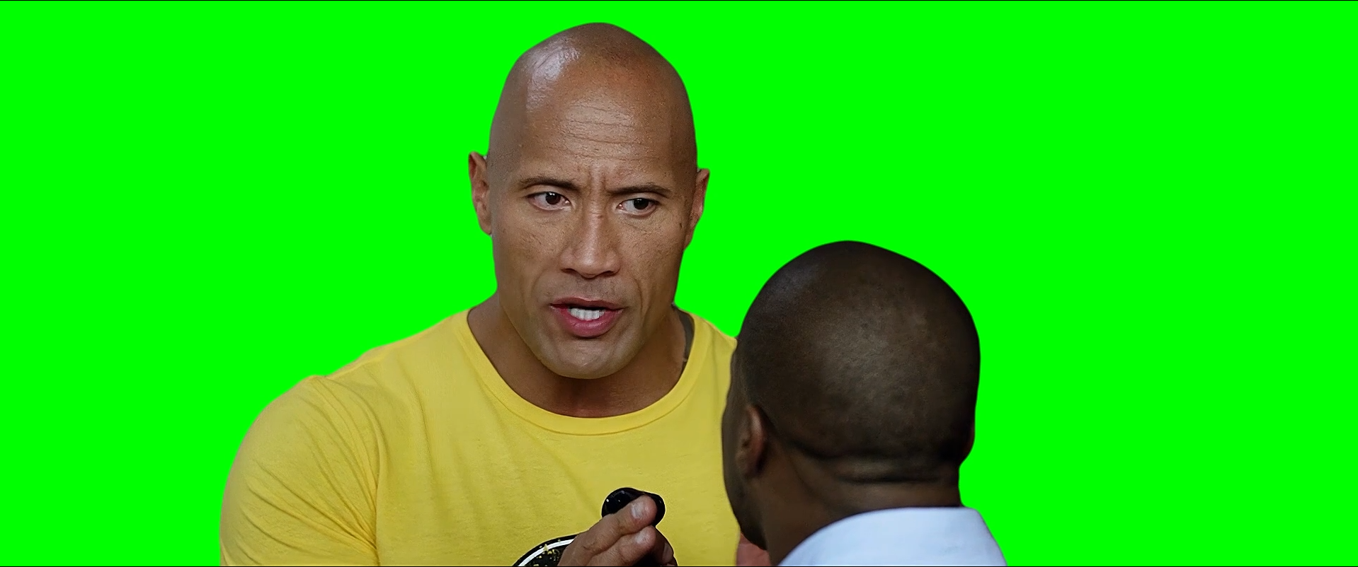Green Screen Meme Template of The Rock saying "Are you in or are you out?" to Kevin Hart in the Central Intelligence movie
