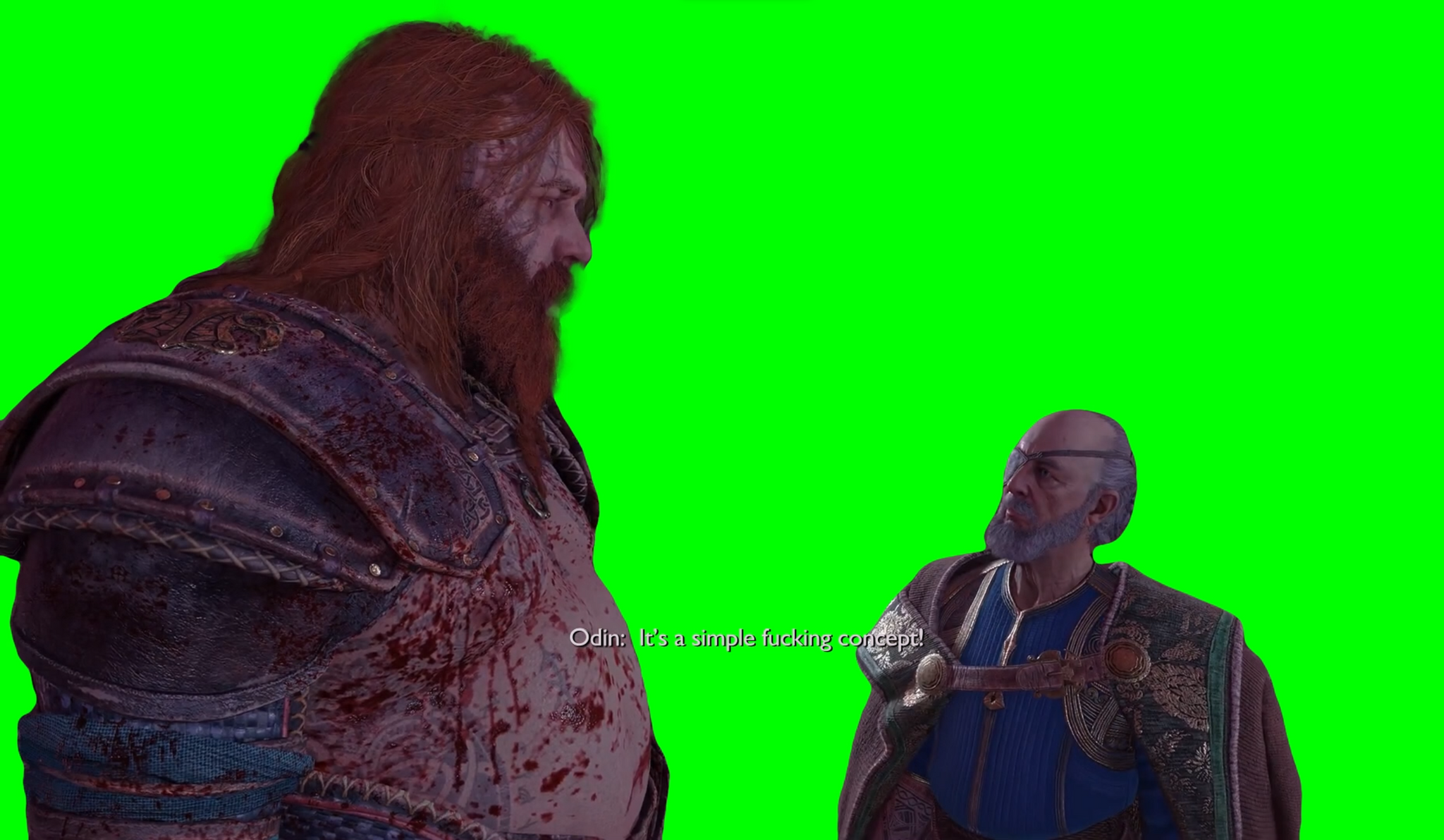 Green Screen Meme Template of Odin saying "You don't think. I think, you kill." to Thor in the God of War Ragnarok videogame
