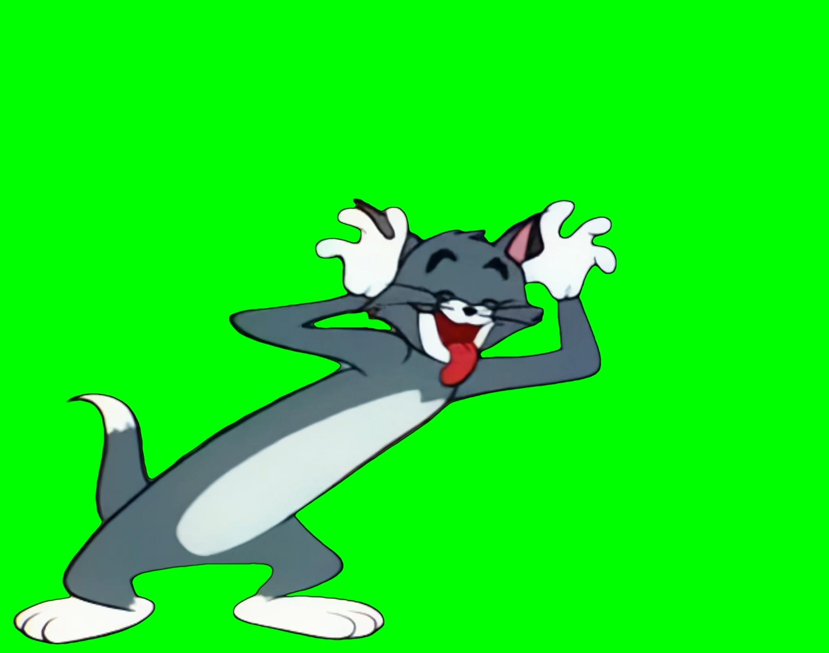 Green Screen Meme Template of Tom the Cat making silly faces at Spike to taunt him when his owner, George, scolds him and says "TOM! Do you want the neighbors to think you're crazy?!"