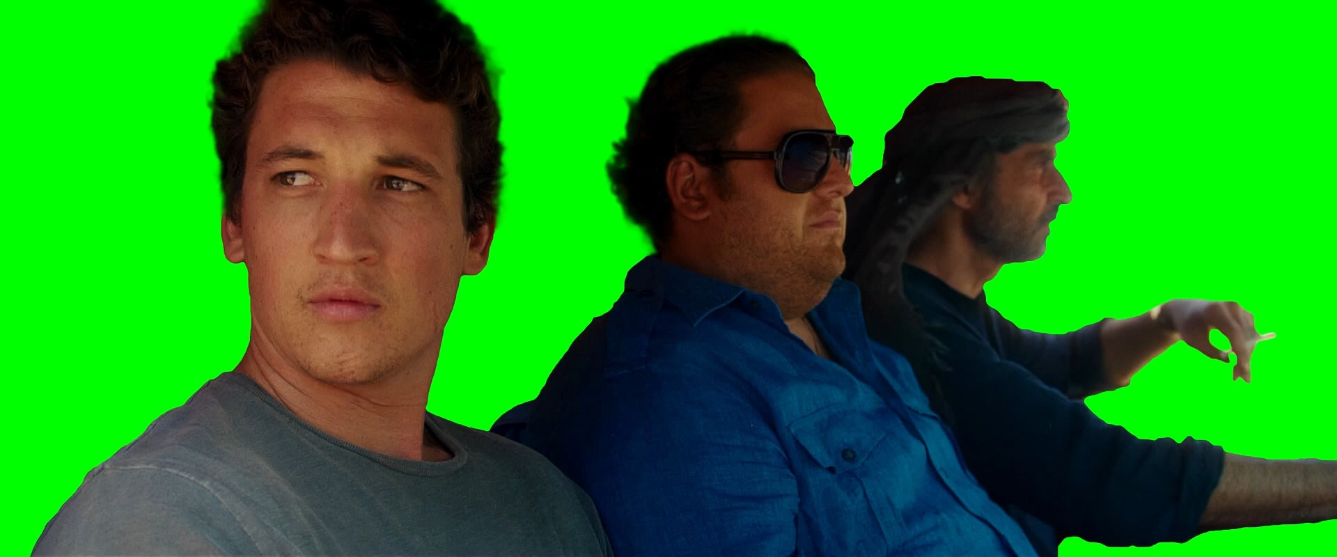 Green Screen Meme Template of Miles Teller asking "Is this safe driving to Baghdad?" and the driver says "Yes, very safe. 50/50"