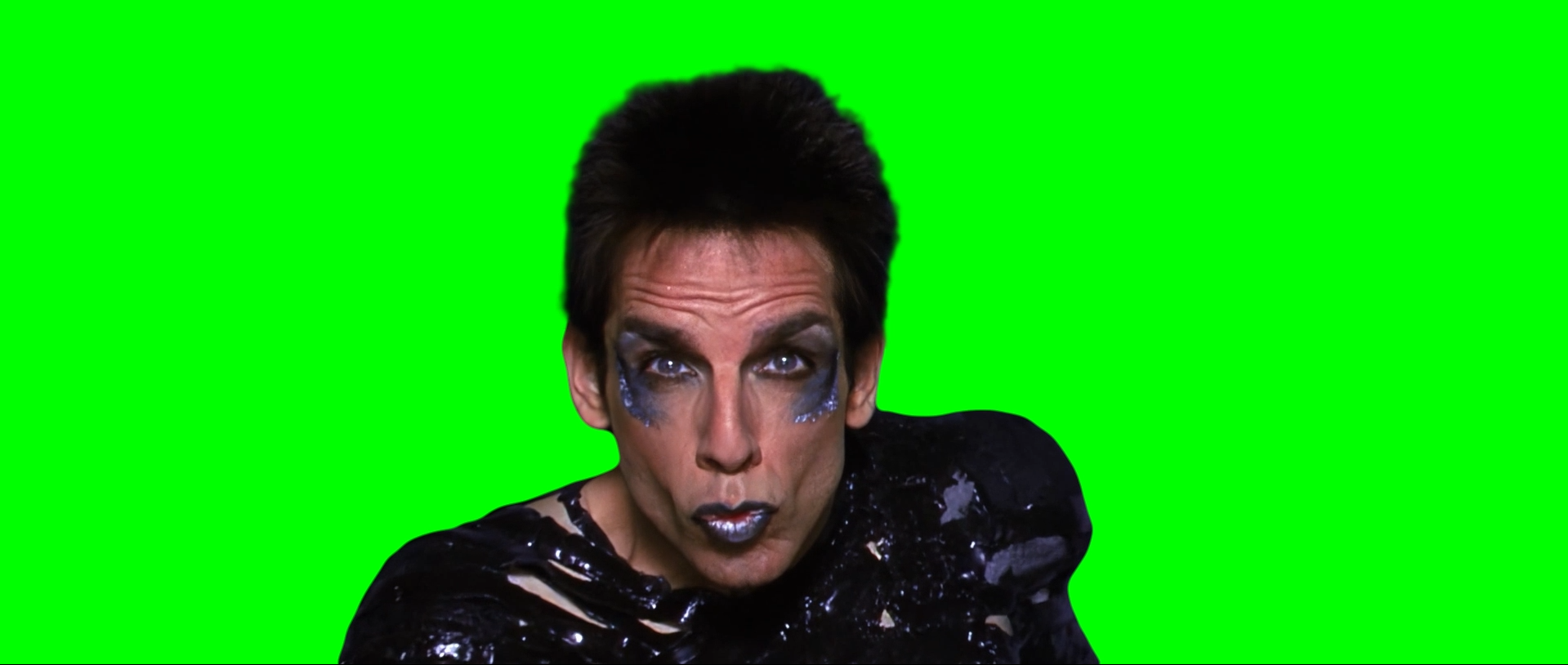 Green Screen Meme Template of Derek Zoolander doing the Magnum face and with Mugatu saying "It's beautiful!" in the Zoolander movie