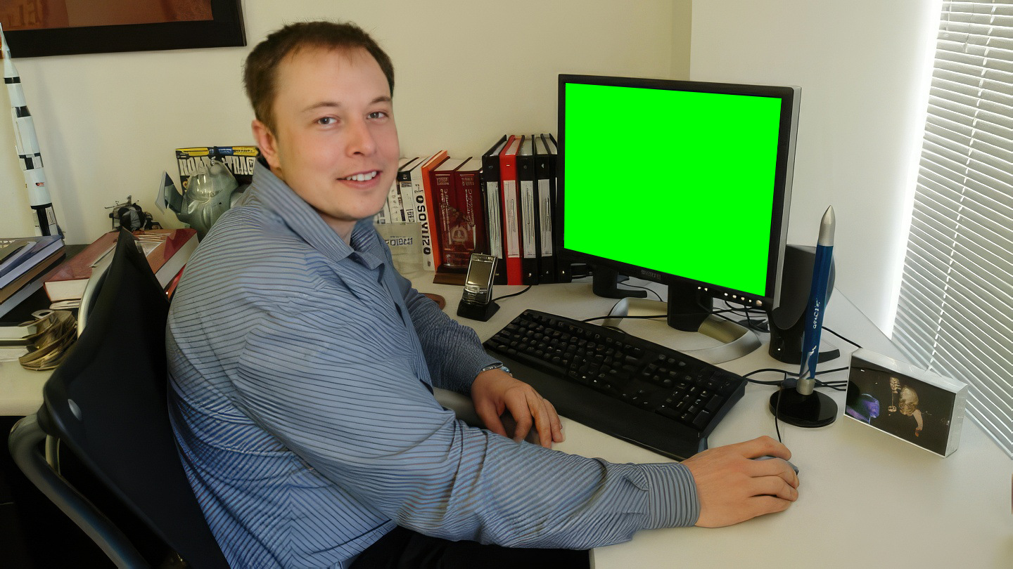 • Elon Musk on his computer in the 2000s (Green Screen)