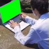 • Man Using Laptop at Beach meme V2 (Green Screen)