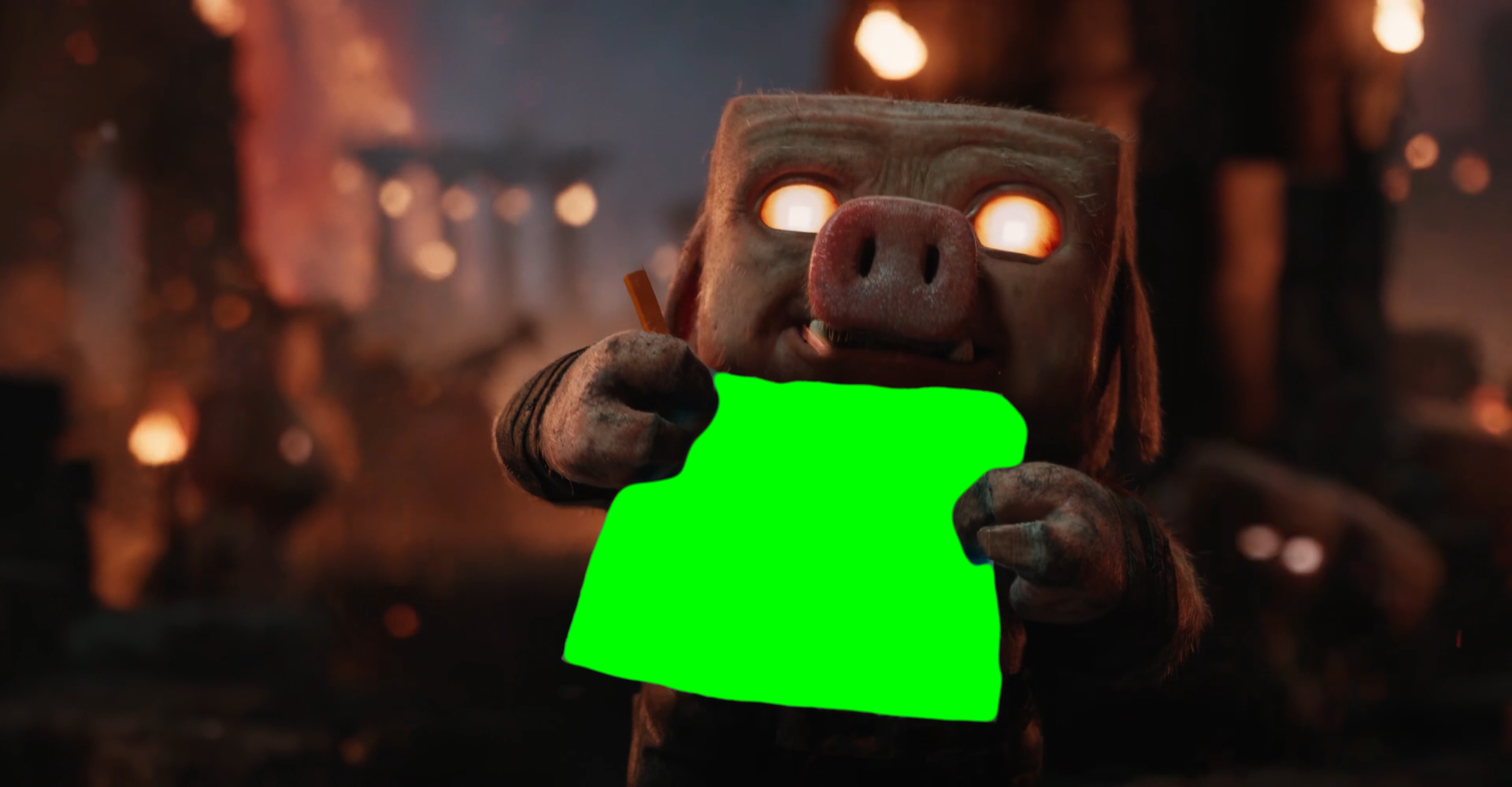 Green Screen Meme Template of a baby piglin getting stabbed after showing the adult piglin his drawing