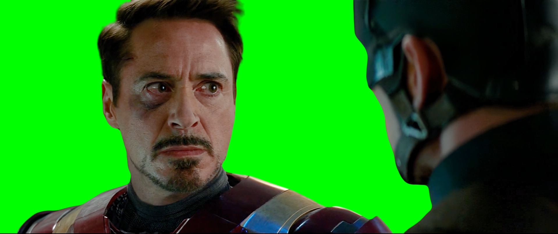 Green Screen Meme Template of Iron Man asking "Did you know?!" to Captain America in the Captain America: Civil War movie