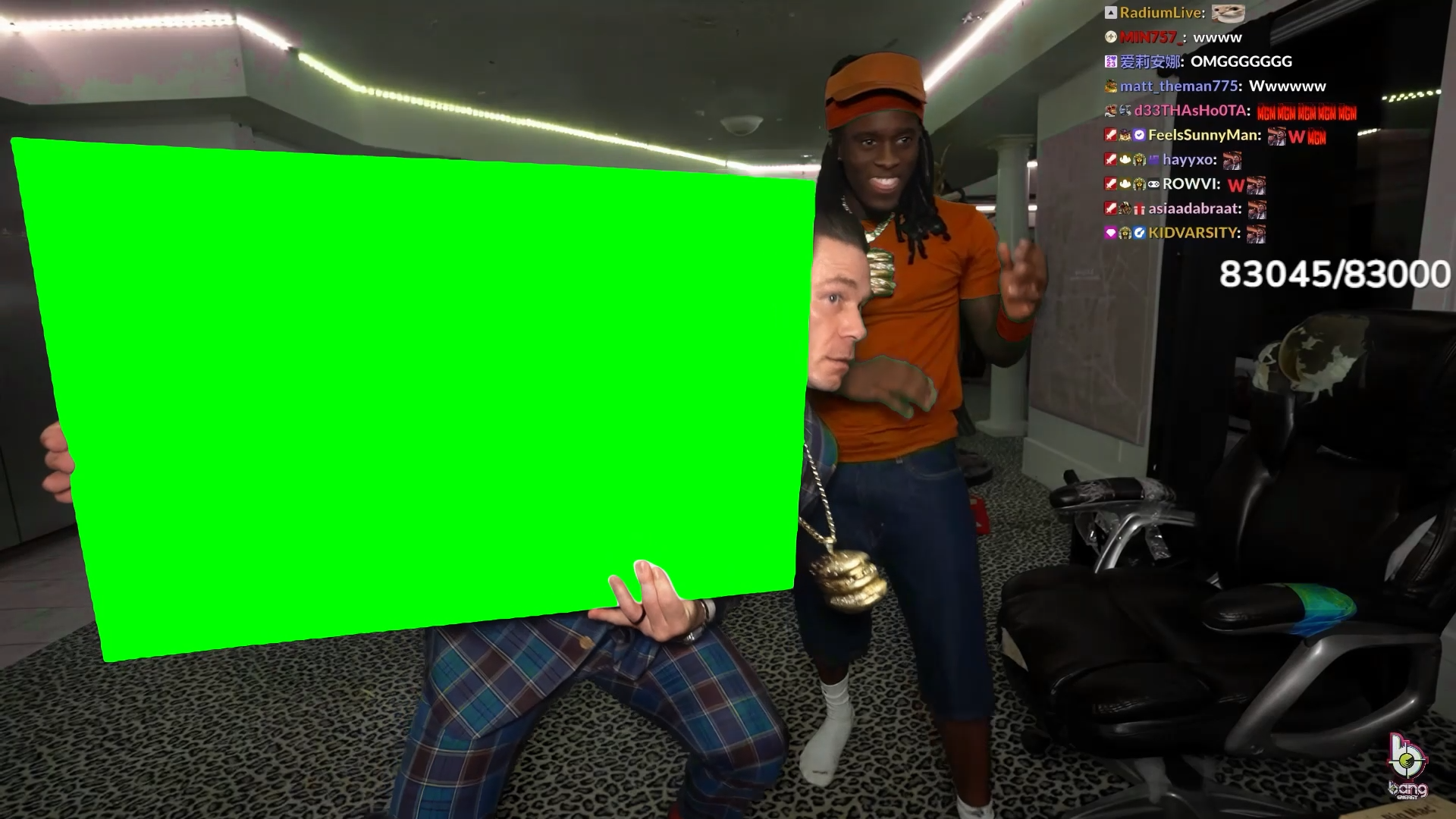 Green Screen Meme Template of John Cena holding a signboard during Kai Cenat's Twitch Livestream