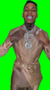 A Green Screen of a NLE Choppa in a suit on the street and posing for a video with his diamond jewelry