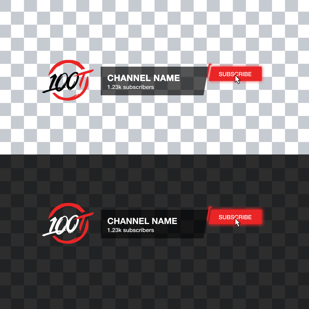 Drag and drop this 100T themed subscribe animation for your YouTube channel. Both light & dark mode logos included. Sounds effects included. Not affiliated with 100 Thieves.